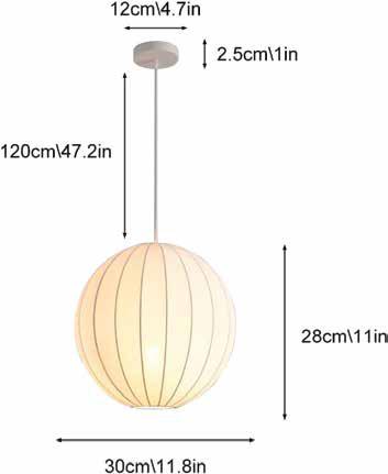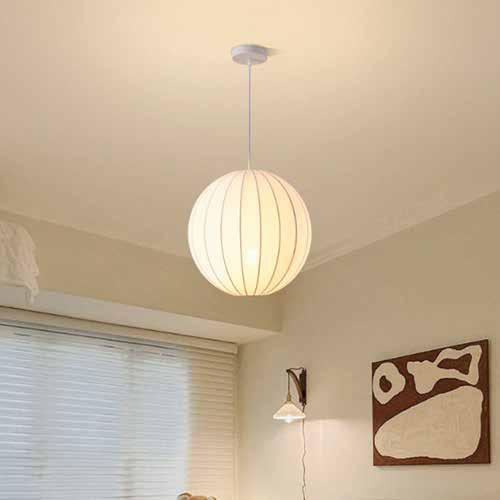 Nordic style pendant light with ribbed fabric ball shade and minimalist metal finish. Adjustable 120cm hanging cable. Compatible with E27 bulbs up to 40W.